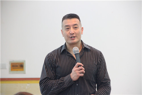 本次讲座的主题为“Simultaneous Interpreter Demystified”。费杰教授采用全英文讲述的方式,依次从三个方面展开本次讲座。首先,他从自己在同声传译行业的工作经历入手,讲述了同传等翻译行业的发展,并灵活地借用了最近热播的电视剧《翻译官》进行说明。费教授说:“翻译是一份需要实力的工作,要静心,要打实基础。在校大学生要努力提高自己的英语能力,脚踏实地,在一点一滴的进步中不断自我完善。”其次,他讲述了自己的学习经验。他提出,词汇的重要性不言自明,但要做好同声传译,更要注意自己其他方面知识的积累,同时,英语语法的重要性也不容忽视,希望同学们在语法的学习上多下工夫。最后,他向同学们介绍了一些同传学习的方法,并与其一起前往同声传译教室做“实战练习”,更加深入地讲解同声传译所需的技巧与能力。