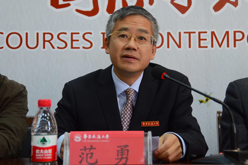 与江西省交通与工程应用翻译研究中心联合承办的第七届“当代中国新话语”国际学术研讨会在我校成功举办。副校长范勇出席开幕式并致辞。500余名来自于英国、澳大利亚、韩国、北爱尔兰、中国澳门、中国香港等中外话语研究领域的知名专家学者、外语期刊主编以及中青年学者参加了研讨会。