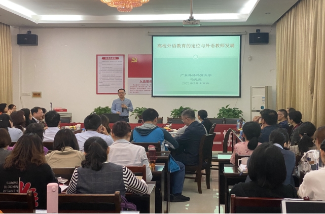 冯光武教授做了题为“新时期我国外语教育的定位和外语教师发展”的讲座。冯教授用生动形象的语言,概括高校外语教育范畴,分析了外语类专业定位存在的问题、内涵定位、人才培养定位、大学外语的定位以及大学外语教师现状和发展。