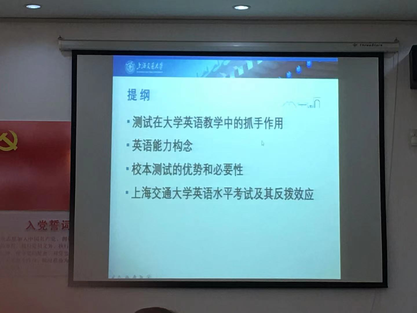 常辉教授的报告分为四个部分:测试在大学英语教学中的抓手作用、英语能力构念、校本测试的优势和必要性、上海交通大学英语水平考试及其反拨效应。