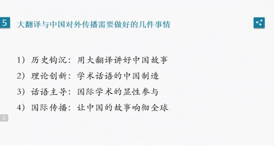 最后,罗选民教授总结道,大翻译是中国文化战略实施的重要手段,与世界文学翻译经典的形成密不可分,是世界文学得以建立的基础。要想让中国文学作品得到世界性的广泛地传播,就必须注重大翻译,建立中国文学和文化的集体文化记忆,唯有这样,中国才能在建立人类命运共同体方面发挥重要的积极作用。