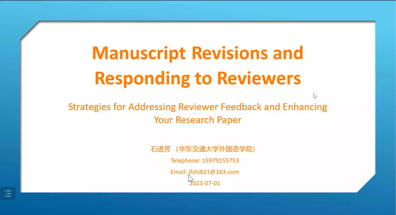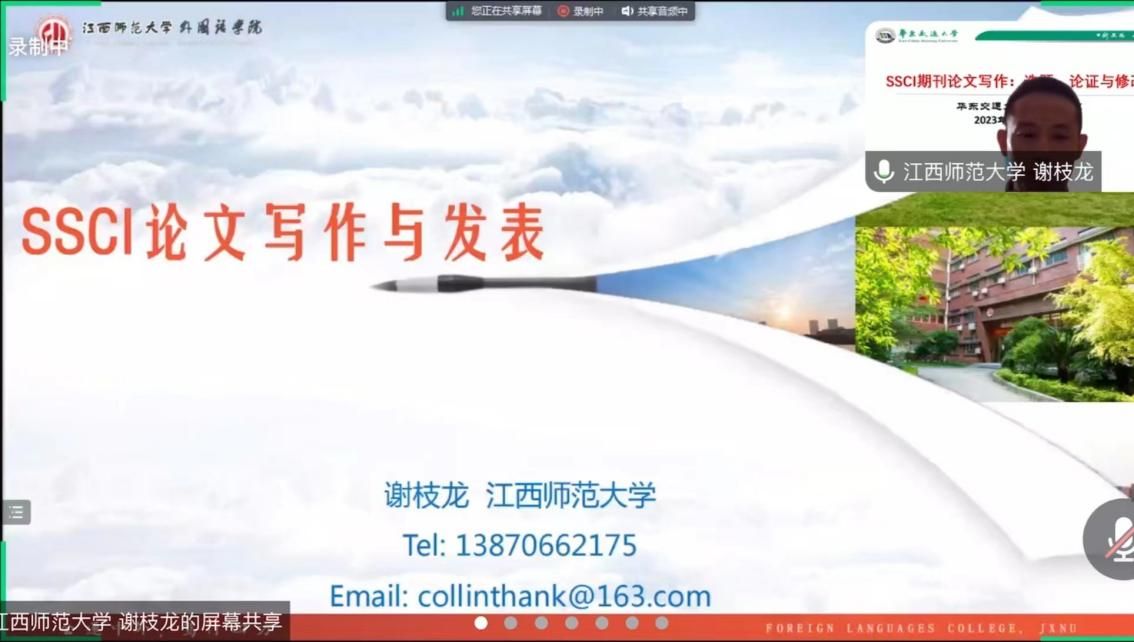 为加强学院学科建设,增强师生对国际期刊论文写作的了解,2023年 7月3日学院举办了主题为“SSCI期刊论文写作:选题、论证与修改”的系列学术讲座。讲座以线上形式进行,由江西师范大学谢枝龙教授、湖南师范大学肖越海教授和彩票