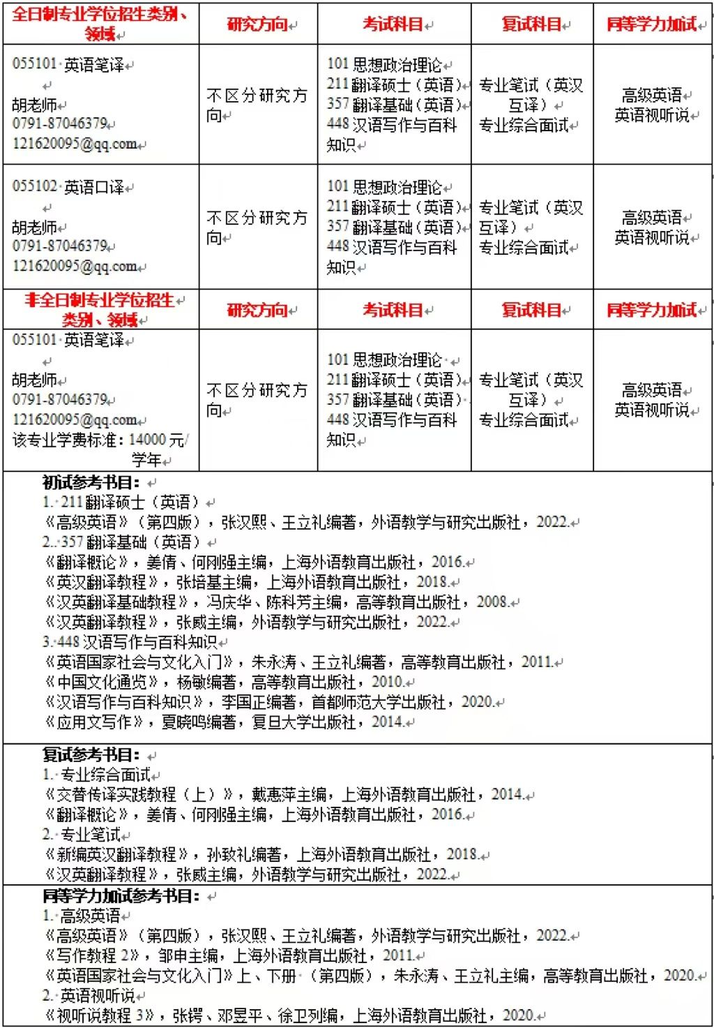 翻译硕士专业学位授权点2018年顺利通过国务院学位办学位点专项评估,2020年12月参加全国专业学位水平评估,取得较好成绩。2022年2月顺利通过全国周期性硕士学位点合格评估。近几年获批建设一批国家级和省级研究生优质课程和案例建设项目,其中,《中外铁路文化之旅》课程获批国家一流课程及全国翻译专业学位教指委示范课程,《交通运输工程翻译》《应用翻译》《技术写作与翻译》《专题口译》《FIDIC条款》等获批省级线上一流课程。2021年本专业高层次特色创新翻译人才培养模式建构与实践获江西省研究生层次教学成果一等奖。