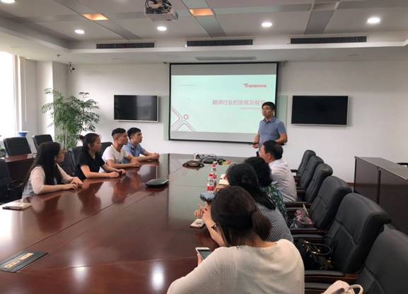 6月29日,两位教授率2017级翻译硕士研究生一行到武汉传神语言服务公司观摩学习。公司张总首先带领同学们参观了公司的翻译部和业务部,随后介绍了翻译行业的发展及对该行业未来的展望。