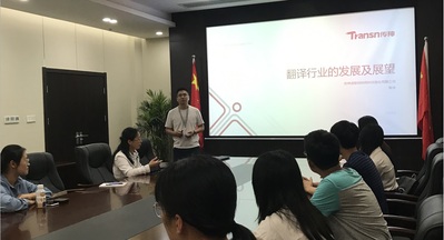 6月18日,在传神语联网网络科技股份有限公司,张华总经理介绍了翻译行业的发展及未来展望,分析了“一带一路”背景下的语言服务巨大市场需求,深入探讨人工智能时代 “人机共译”(AICT)模式下语言服务人才基本能力和要求。随后,同学们现场观摩了传神语联网网络科技股份有限公司的翻译、质检、技术等部门。