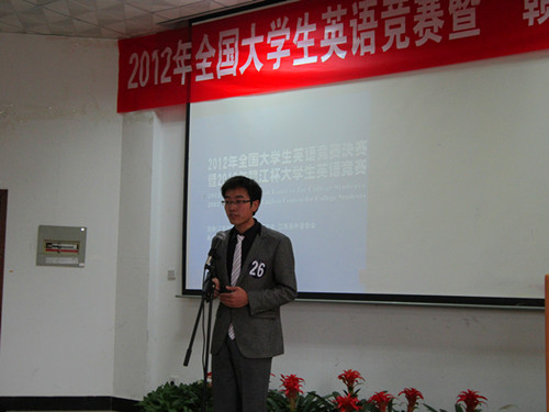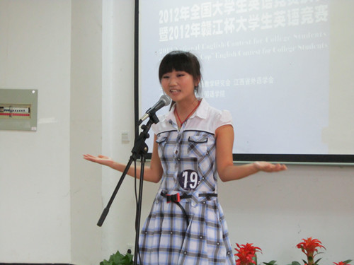 本站讯(记者徐谢哲甜 肖家玮报道)5月14日,为期3天的2012年全国大学生英语竞赛决赛暨第七届“赣江杯”大学生英语竞赛(江西赛区)迎来了比赛的最后一天。经过前一天笔试和听力的筛选,50位A、B组选手、55位C组选手以及50位D组选手入围口语决赛。