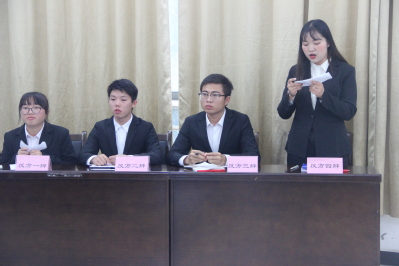 “新生杯”中文辩论赛决赛于外院楼102室成功举行。17级英语(翻译)二班刘亚南和17级英语(国际贸易)二班饶睿智担任本次比赛评委。