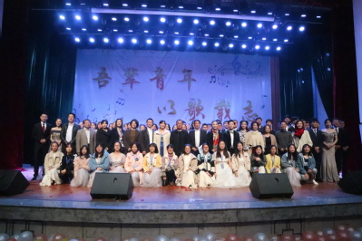 第十六届“吾辈青年,以歌载志”外文大合唱于南区礼堂举行。18个班级两两组队,以精心的编排、生动的演绎、动人的歌声震撼全场。校党委副书记肖长春,校学工部(处)副部(处)部长王冰雪,彩票
