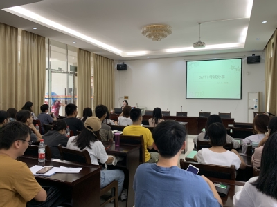 座谈会伊始,2018级研究生郭紫薇同学受邀向2020级新生们分享了CATTI二级笔译考试的备考经验。她从CATTI考试的重要性以及备考心得等方面给同学们进行了分享并给出非常实用的建议。例如,汉译英要侧重看官方文件,英译汉要侧重读外刊等。她结合亲身经历向同学们强调了知识输入和实践输出的重要性。她以自己参加的一次中医药翻译比赛为例,鼓励同学们要尝试对比优秀翻译作品,不断改善和提升自身翻译水平。
