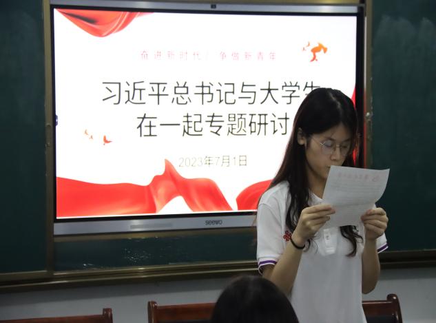 学生骨干积极上台交流发言,与大家分享学习“习近平总书记与大学生在一起这十年”的心得体会。其中危思佳同学谈到,青年作为国家的先进力量,要跳出舒适圈,在实践中增长新本领,这是总书记对我们青年的期待,也是我们自身成长的必行之义。任绍博同学则表示,一代人有一代人的际遇 一代青年也有一代青年的使命,我们青年必须坚定理想信念,担当时代职责。