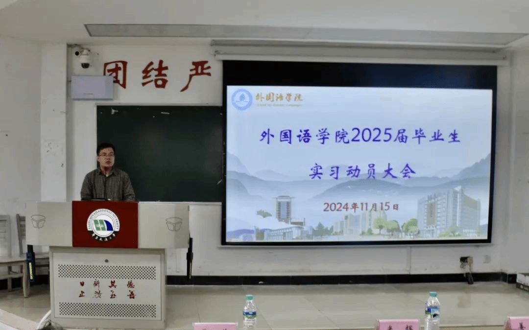 于南图301举办2025届毕业生实习动员大会暨就业再动员大会。院党委副书记光辉,实习中心主任姜浩,学工办负责人郑伟、毕业班辅导员钟雪倩出席,2025届全体毕业生参加会议,会议由郑伟主持。