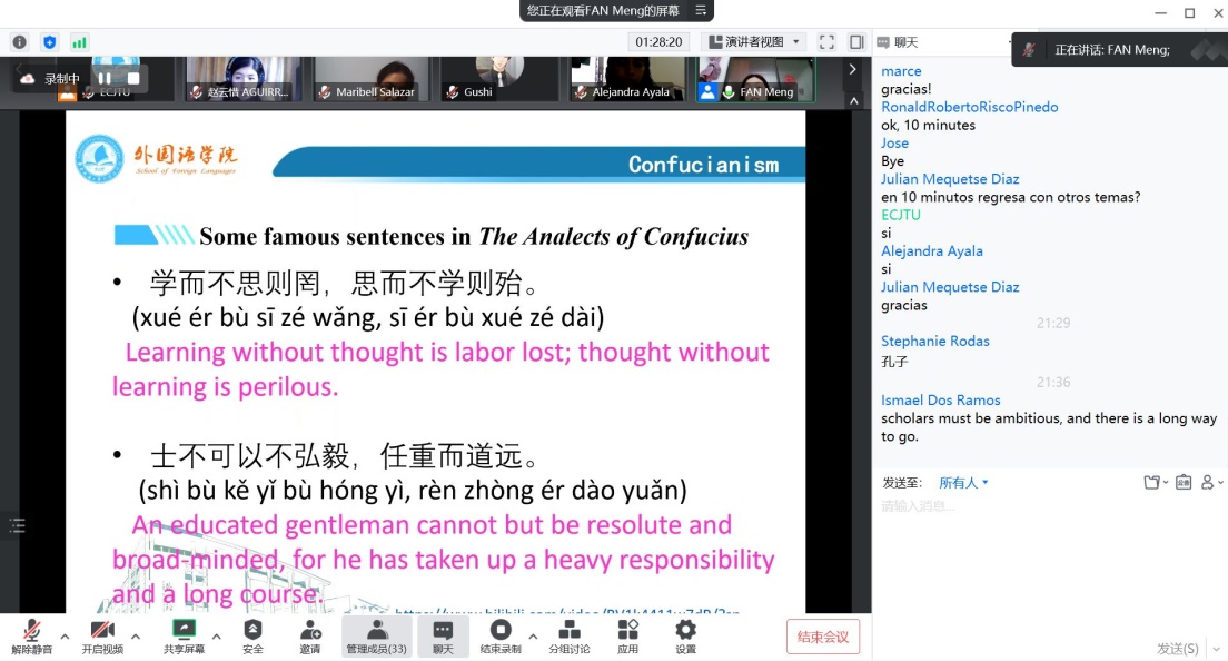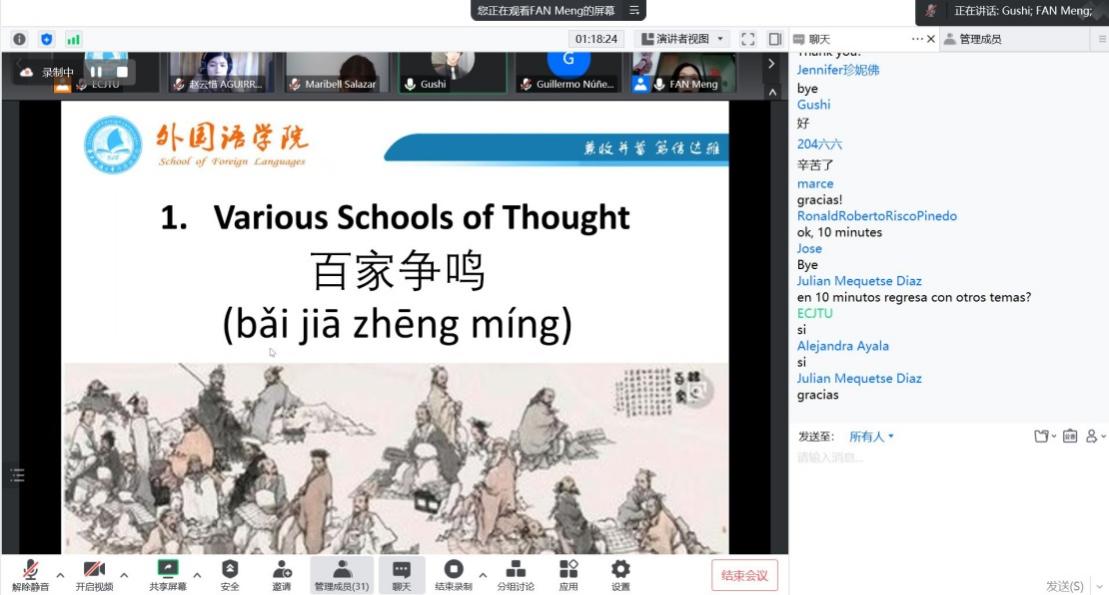 举办的“遇见中国”美洲西班牙语青年赴华东交大云端夏令营正式拉开帷幕,副院长赵小晶以《中国概况》为主题带来第一场文化讲座。