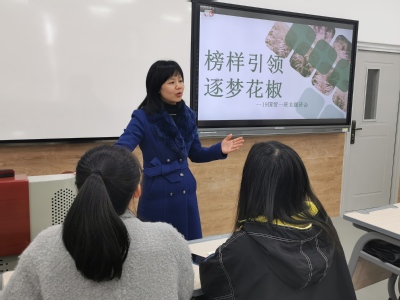 班会伊始,单伟红简短地向同学们介绍了两位优秀学子的”花椒故事“。她同时提出期望:”同学们要向榜样看齐,踏实学习,努力提高自身能力与素养,以后也能向她们一样站在‘闪耀花椒’的舞台上展示自我。“