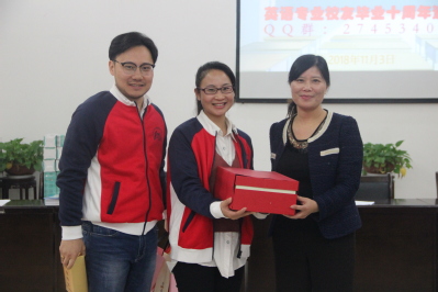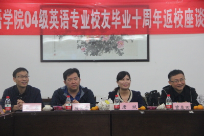 党委副书记)如是说。此次座谈会持续两个多小时,校友纷纷表示能与昔日的老师同学相聚很难得,十分感谢学校及外院的精心组织,对学校、学院和英语系在10年来欣欣向荣的发展感到由衷的自豪,他们还给各位老师送上了精心准备的礼物。