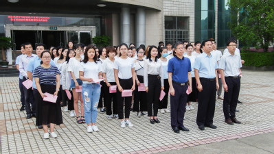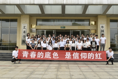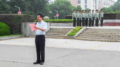 15级国贸班同学一起,参加庄严的升旗仪式并诵读夏明翰烈士写给母亲的红色家书。