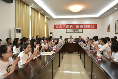 102教室,参加“青春的底色,是信仰的红”主题团日活动。在活动开始前,张玉清问起了班级情况,在了解到全专业有57名同学时,他开心地介绍自己道:“那我就是58号,你们的玉清同学。”并分享了自己的学习经历。他感慨大学时光对自己的深远影响,勉励同学们向更高更远的目标出发。师生们还共同观看了纪录片——《厉害了,我的国》,并交流了自己的观影感受。