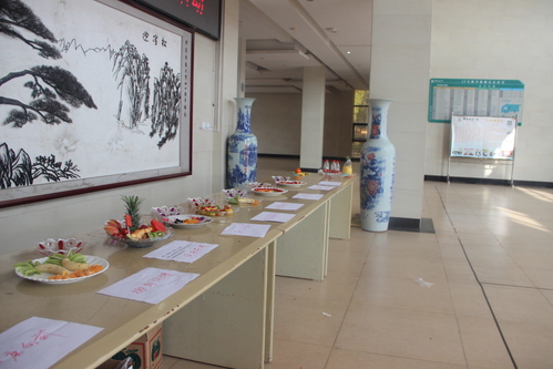 心灵手巧的教职工们将常见的水果DIY成各种精美的造型,更别出心裁地为自己的“大作”取上“同舟共济”、“一‘鹿’向前”、“Flying in love”、“Sunny life”等创意十足的名字,作品各具特色,一时间难分伯仲。