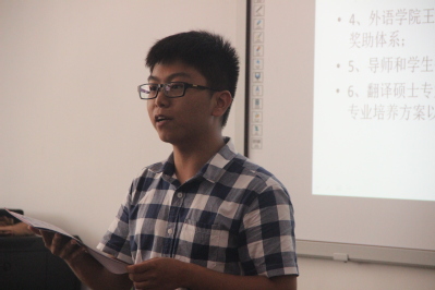 副院长袁平华在会议上介绍了校情、院情以及学科建设的内容;院党委副书记王朗就研究生相关管理制度和奖励体系做了详细的说明;翻译硕士专业负责人陆秀英老师与大家讨论翻译硕士专业培养方案以及双向选择确定导师等事宜。