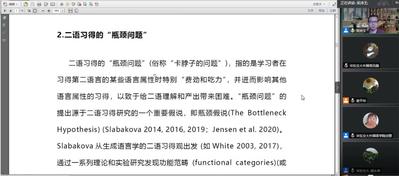 师生带来了一场题为“中国学习者英语学习的瓶颈问题:来自于两个英语语法构式习得的证据”的学术报告。本次报告会采用网络视频的方式进行,报告由彩票