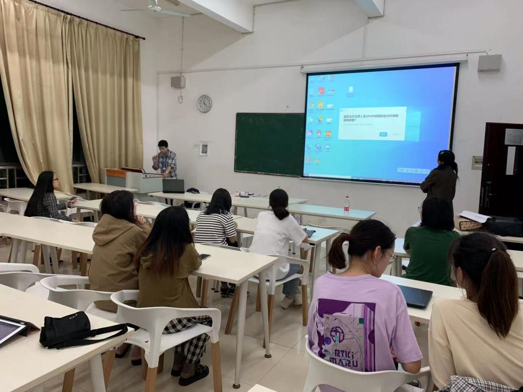 MTI中心在学院领导部署下迅速启动组建了一支由3位老师(陆秀英、彭翠、刘庆雪)与20名翻译专业学生组成的同声传译服务团队,于当晚11点克服任务重、时间晚等困难启动七届中国国际“互联网+”大学生创新创业大赛同声传译译前培训。本次培训由江西省必特翻译有限公司总经理李为、副总经理郝玫,以及技术总监现场指导。