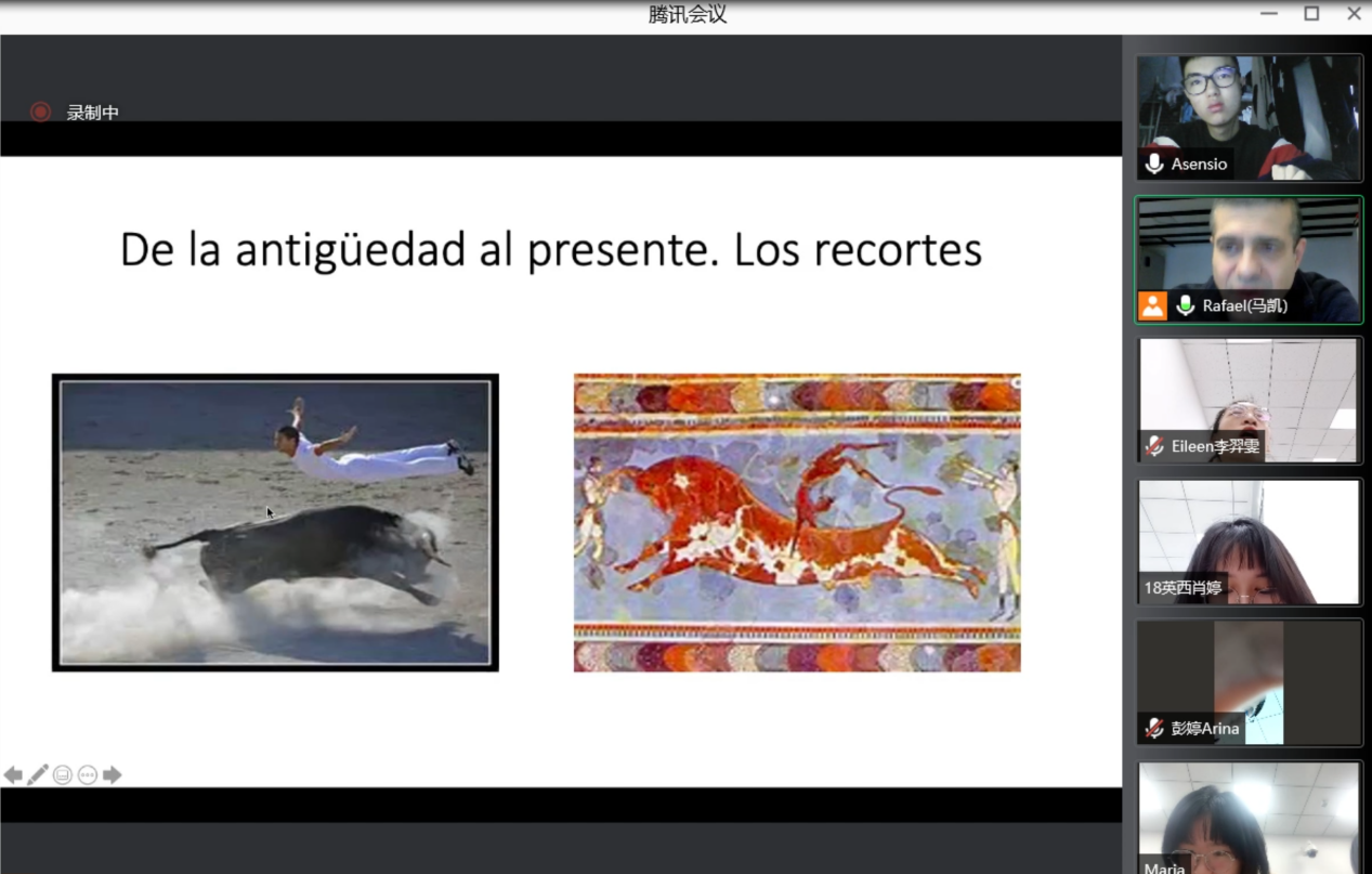 方丹:讲座虽然只有短短的一个小时,但Rafael老师却带着我们体验了各式各样西班牙文化,从tapas的美食盛宴,到极具西班牙特色flamenco的视觉盛宴;从激情澎湃的奔牛节、斗牛互动到古老浪漫的格兰纳达大学城…