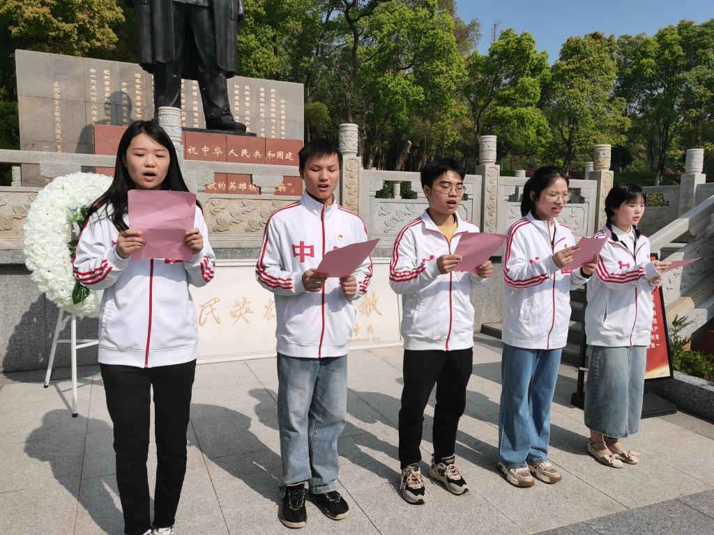 在方志敏烈士雕像前,五位学生党员代表深情诵读了红色家书《可爱的中国(节选)》,带着大家跨越时空,回到战火纷飞的年代,感受方志敏烈士的热血与坚毅,以及深切的爱国情感。