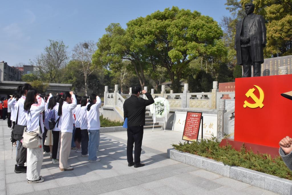 在镌刻“清贫,洁白朴素的生活,正是我们的革命者能够战胜许多困难的地方!”的雕塑广场,光辉向同学们讲授微党课《我把一切交给党——方志敏至死不渝的誓言》,讲述了方志敏烈士的英勇事迹,这位伟大的共产主义战士,毕其一生为党的工作奋斗不止,为崇高信仰至死不渝。党课结束后,大家一同来到方志敏烈士事迹陈列馆参观学习。