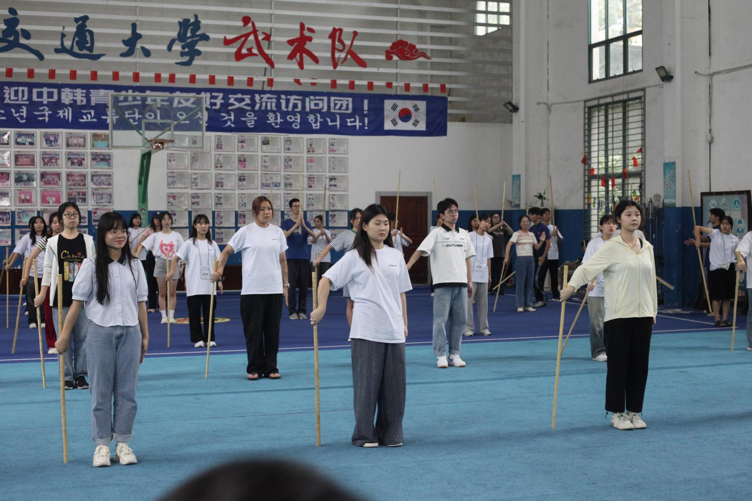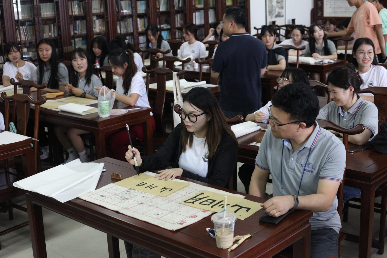 志愿者积极与韩国青年以书法促交流,带领他们领略阴阳变化之美;一对一带领韩国团学生参观我校国家重点实验室,给予热情全面的VR技术等讲解,给韩国团学生带来别开生面的科技乐趣;26名志愿者教授结对伙伴中华传统棍术,展现中华武术独特魅力;他们结伴走进充满烟火气息的万寿宫夜市,在志愿者们的倾情讲解下,韩国团学生得以欣赏独特的豫章风情。