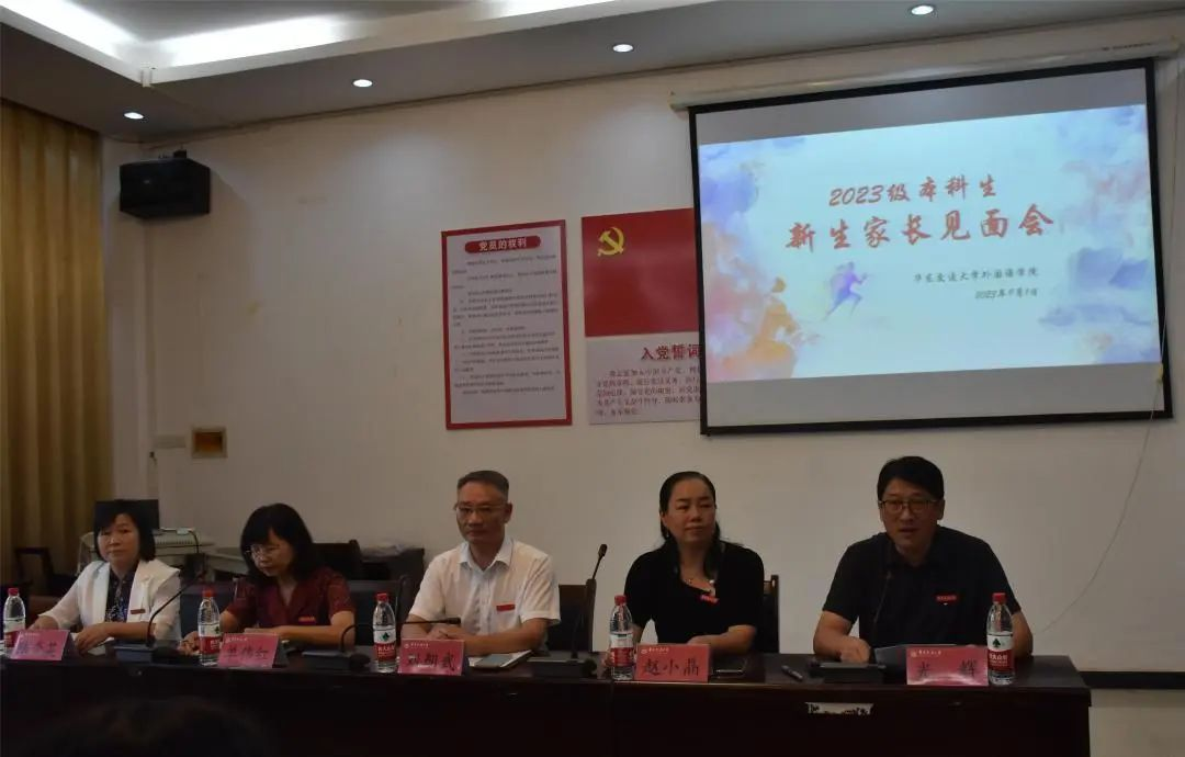 102会议室举行了2023级本科生新生家长见面会。学院党委书记刘朝武、副院长赵小晶、副院长单伟红、党委副书记光辉、副院长陆秀英及新生辅导员、系主任、优秀学生代表和2023级本科生新生家长共同参会,会议由光辉副书记主持。