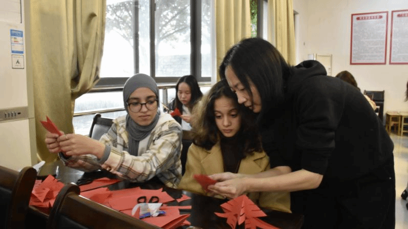 随后,沈大师为荣获优秀剪纸作品的学生送上了精心准备的十二生肖剪纸礼品,并为获奖的留学生送上了代表幸福美好的“福”字剪纸,以鼓励他们在剪纸艺术学习与创作中的优秀表现。