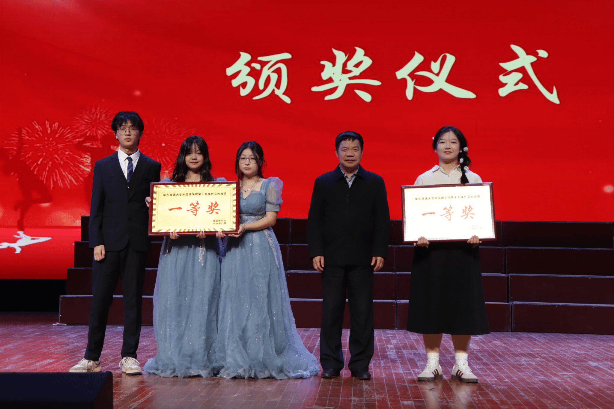 “用尽全力想将结局改变,哪怕只和你说声你好”“我明白你的痛苦与恐惧,我会成为你的灯塔,让你安然无恙”在精彩的合唱展示和角逐之后,葡萄牙语2023-1班、英语(国际贸易)2023-2班,英语(英西复语)2023-1班、英语(国际贸易)2023-1班获一等奖;翻译2022-1、翻译2022-2班,翻译2023-1班、翻译2023-2班,翻译2024-1班、翻译2024-2班获二等奖;英语(国际贸易)2022-1班、英语(国际贸易)2022-2班,葡萄牙语2022-1班、英语(英西复语)2022-1班,翻译硕士2023-1班、翻译硕士2024-1班,葡萄牙语2024-1班、英语(英西复语)2024-1班,英语(国际贸易)2024-1班、英语(国际贸易)2024-2班获三等奖
