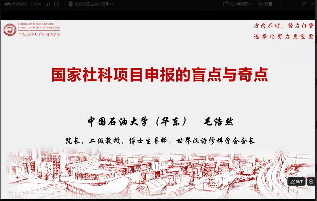 院长毛浩然教授,为学院教师带来一场题为“国家社科项目申报的盲点与奇点”的线上讲座。 毛浩然教授从“国家社科立项的项目分析、申报盲点、申报奇点、选题论证与正反案例、申报结项常见问题解答”五个维度,深入剖析了国家社科项目申报的核心要义。他强调选题的重要性,用“选题是否靠谱,其实占了七八成。方向不对,努力白费”的金句,点明了选题对项目申报成败的关键作用。毛教授还对彩票