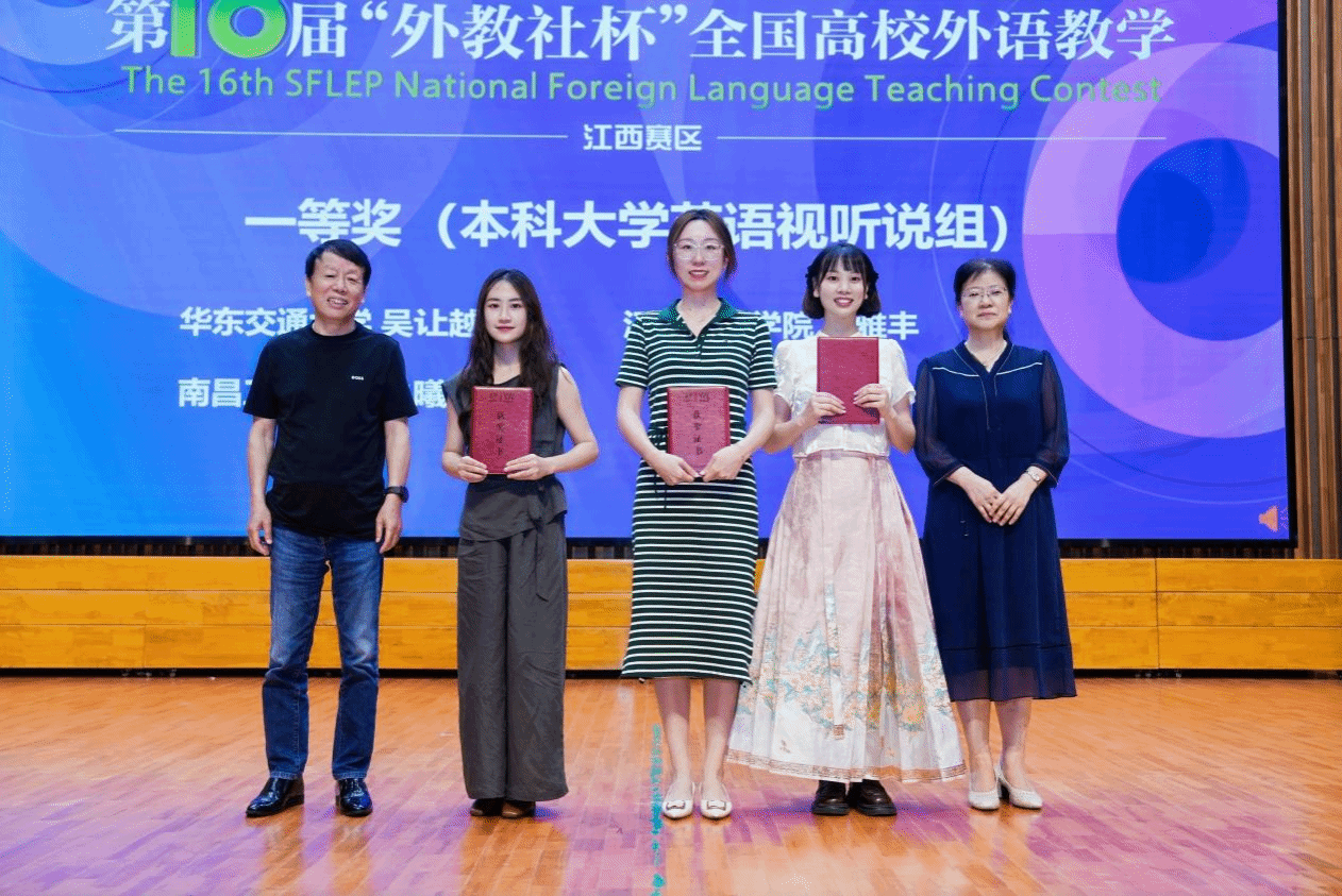 青年教师吴让越获视听说组一等奖(排名第一),将代表江西省参加全国比赛。舒星老师获综合组三等奖,邹健老师团队获微课组二等奖。
